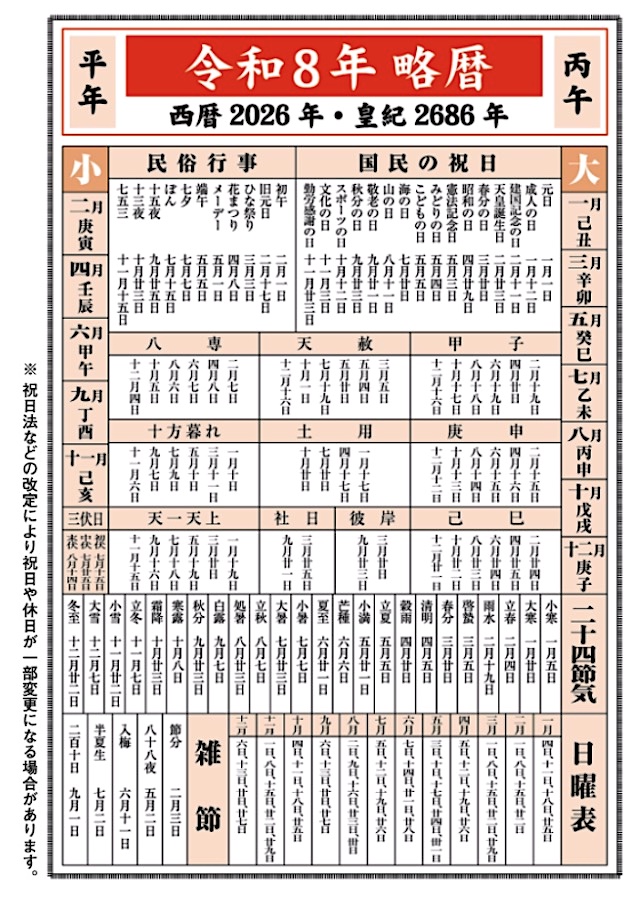 太陽暦の2026年2月17日(日)が、太陰暦の旧正月